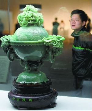 一邊是珠光寶氣的金銀飾品、翡翠水晶;一邊是鄉(xiāng)土味濃的毛竹根雕、龍蝦蟹簍。由中國(guó)藝術(shù)研究院主辦的首屆中國(guó)當(dāng)代工藝美術(shù)雙年展,昨起正式向觀眾開(kāi)放。占地超過(guò)11000平方米的共計(jì)八個(gè)展廳里,匯集了約千件當(dāng)代工藝珍品。它們中有玉雕、牙雕、石雕、木雕,也有陶瓷、金屬工藝、漆器、織繡和傳統(tǒng)工藝家具。“稱得上是近年來(lái)國(guó)內(nèi)頂級(jí)工藝品的一次大檢閱。”中國(guó)藝術(shù)研究院院長(zhǎng)助理呂品田介紹說(shuō)。