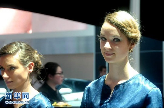 2012北京國(guó)際汽車展覽會(huì)4月25日-5月2日在北京中國(guó)國(guó)際展覽中心舉行。國(guó)外展商的各品牌汽車和國(guó)外模特的精彩表演成為人們關(guān)注的又一個(gè)亮點(diǎn)。圖為展會(huì)上的洋面孔。(來(lái)源:新華網(wǎng))