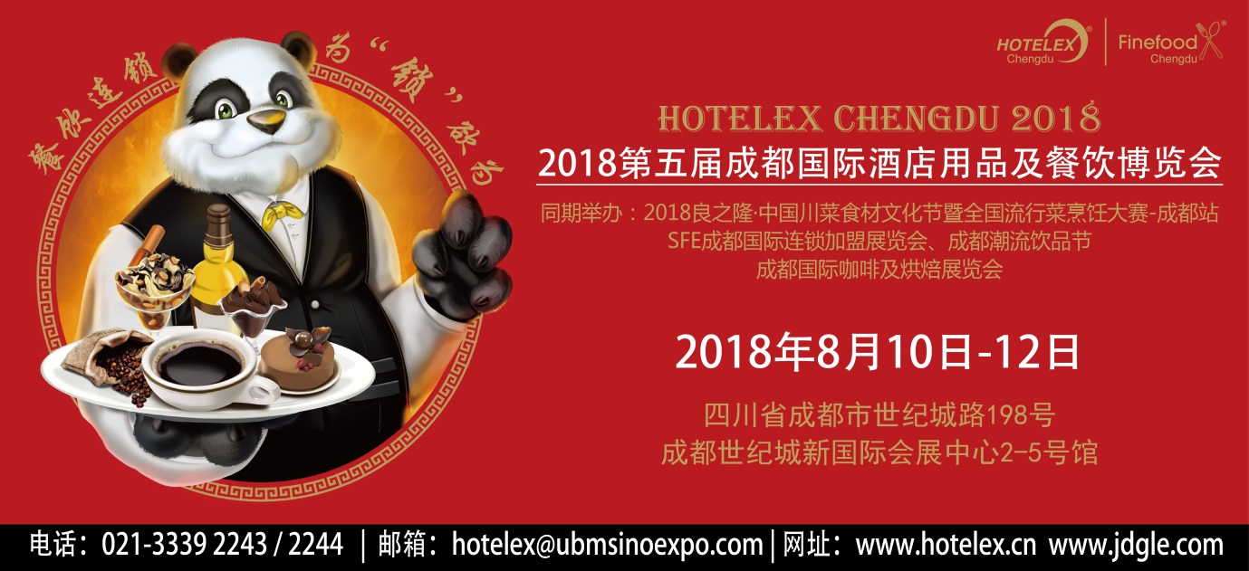 第五屆成都國際酒店用品及餐飲博覽會(簡稱:HOTELEX Chengdu 2018)將于2018年8月10日至12日在成都世紀城新國際會展中心2-5號館舉行(四川省成都市世紀城路198號)。同期還將舉辦2018良之隆中國川菜食材文化節(jié)暨全國流行菜烹飪大賽-成都站、SFE成都國際連鎖加盟展覽會、成都潮流飲品節(jié)以及成都國際咖啡及烘焙展覽會。作為上海國際酒店及餐飲業(yè)博覽會的地方展,立足四川蓉城,輻射西南地區(qū),旨在為客戶提供最豐富優(yōu)質的選擇。
