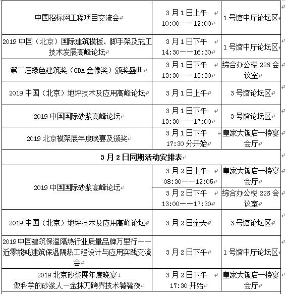 ConstrucTech 2019建筑四新展召開期間還將舉辦多場(chǎng)行業(yè)活動(dòng),包括:2019中國(guó)模板腳手架產(chǎn)業(yè)發(fā)展峰會(huì)、中國(guó)砂漿周系列峰會(huì)、2019中國(guó)地坪技術(shù)與應(yīng)用論壇、2019中國(guó)建筑保溫隔熱行業(yè)質(zhì)量品牌萬(wàn)里行——近零能耗建筑保溫隔熱工程設(shè)計(jì)與應(yīng)用實(shí)踐交流會(huì)、現(xiàn)場(chǎng)施工演示會(huì)、工程項(xiàng)目交流會(huì)、第二屆綠色建筑獎(jiǎng)(GBA金像獎(jiǎng))頒獎(jiǎng)盛典、2019北京模架展年度晚宴、2019北京砂漿展年度晚宴、ConstrucTech建筑師設(shè)計(jì)師對(duì)話等近10余場(chǎng)活動(dòng)。同期活動(dòng)安排如下: