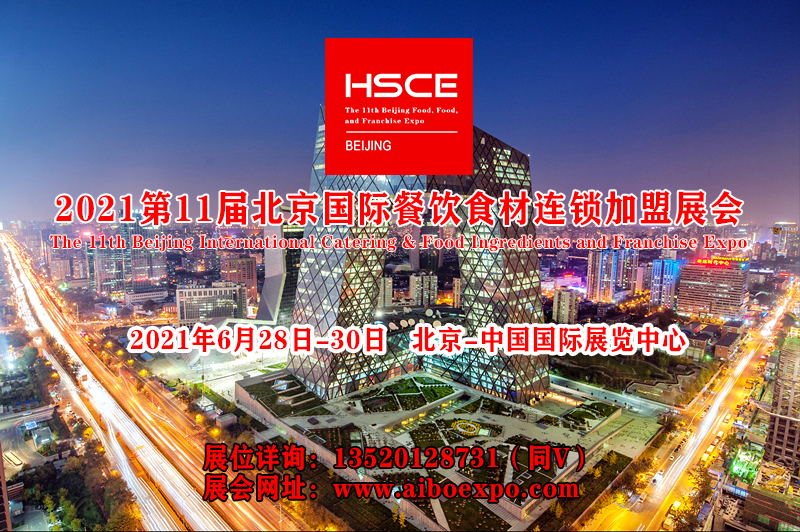 由中國(guó)飯店協(xié)會(huì)主辦,北京市餐飲行業(yè)協(xié)會(huì)、北京市旅游行業(yè)協(xié)會(huì)飯店分會(huì)聯(lián)合主辦的第十一屆北京國(guó)際餐飲業(yè)供應(yīng)鏈及餐飲加盟展覽會(huì)(北京餐博會(huì))將于2021年6月28日-30日在中國(guó)國(guó)際展覽中心靜安莊館舉辦。目前展會(huì)招商招展工作已經(jīng)全面啟動(dòng)。更多展會(huì)資訊或合作歡迎關(guān)注官方微信:餐博會(huì)(id:EXPO-food)