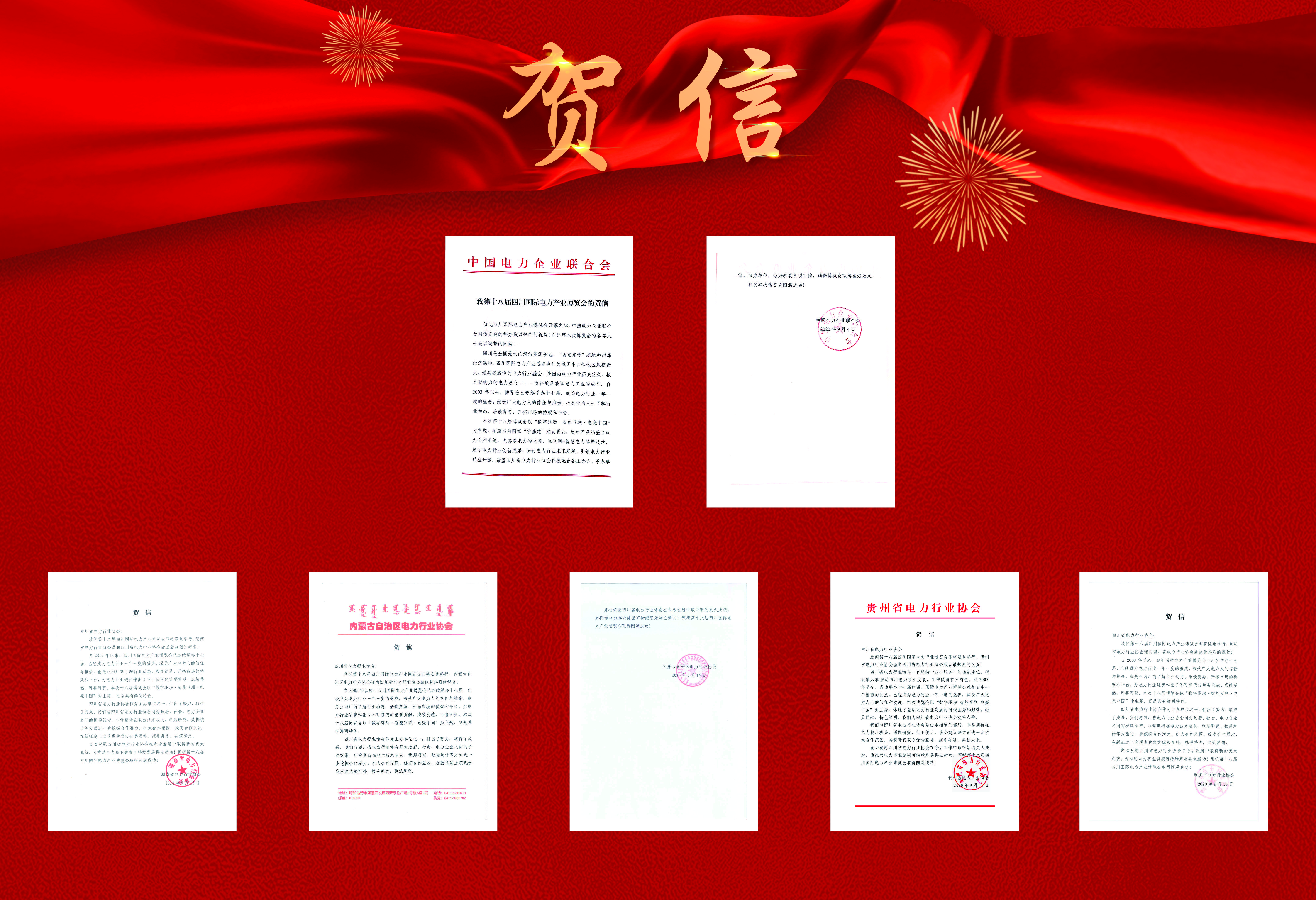 中電聯(lián)及湖南、內(nèi)蒙古、貴州、重慶電力行協(xié)致信祝賀SIEP2020四川電力展開(kāi)幕