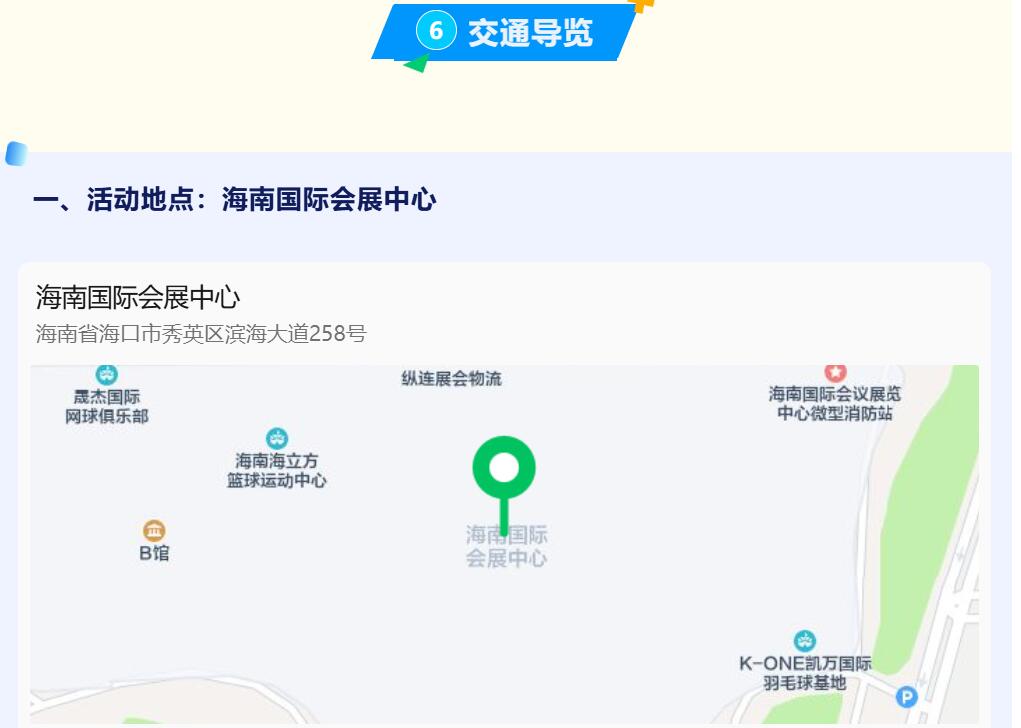 1.??谑行潞8鄞a頭—海南國(guó)際會(huì)展中心距離約6.3公里,車程約12分鐘;